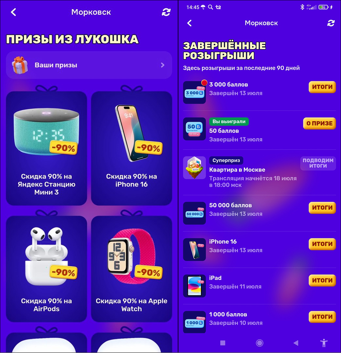 На протяжении всей акции в "Морковске" проходят различные розыгрыши. Они делятся на ежедневные (мини-розыгрыши) и финальный супер-розыгрыш.