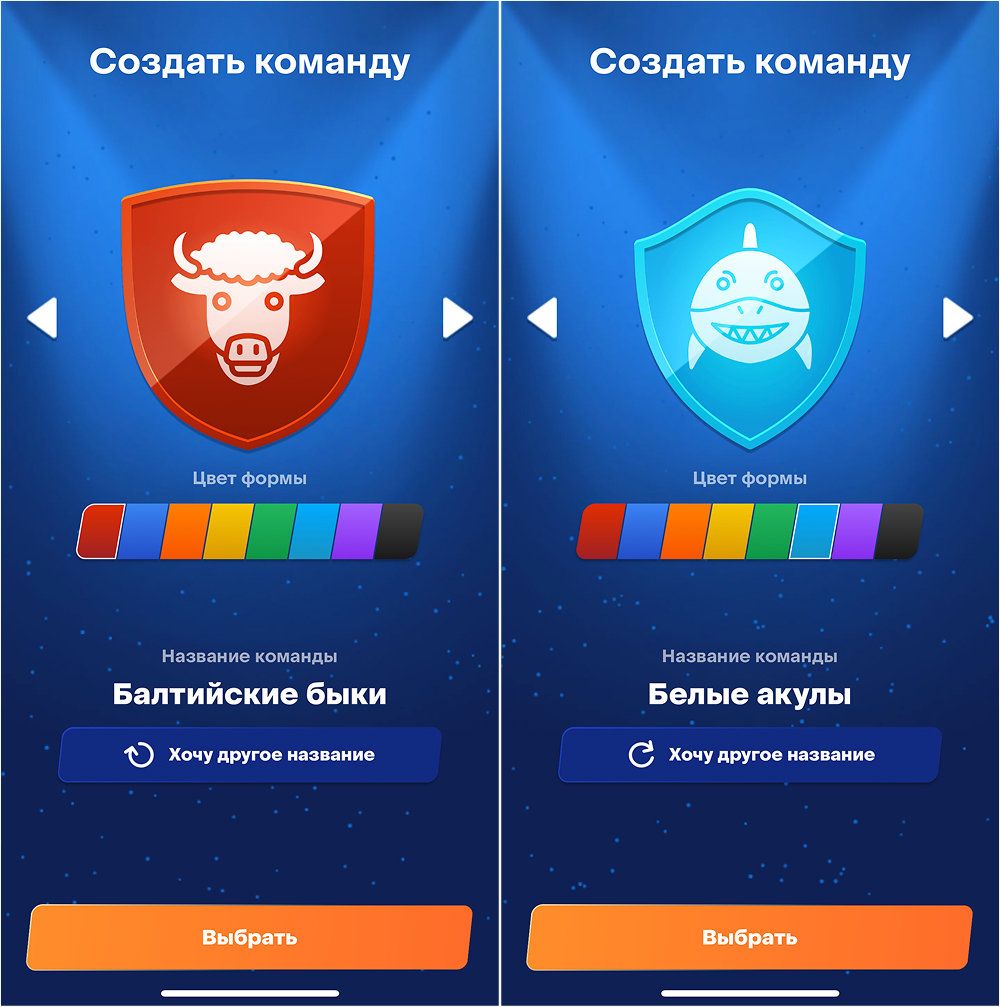 Перед началом игры пользователь может выбрать себе герб и название команды.