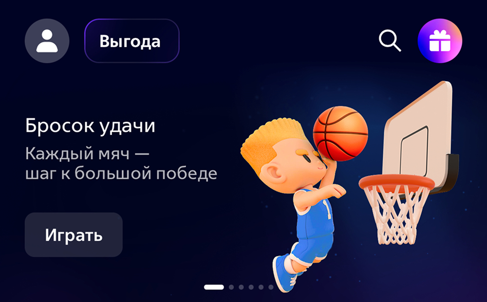 ВТБ запустил в своем мобильном приложении акцию «Бросок удачи» в баскетбольной тематике. Участникам предлагается выполнять задания, получать за них игровые попытки, играть в мини-игры, за победы в них копить звезды, в зависимости от звезд перемещаться по таблице рейтинга и лигам. В зависимости от позиции рейтинга участники получают призы (см. ниже). Также в процессе своей активности игрок открывает новых персонажей баскетбольной команды и копит стикеры, которые помогают ему проходить мини-игры и копить звезды = перемещаться по рейтинговой таблице и лигам.