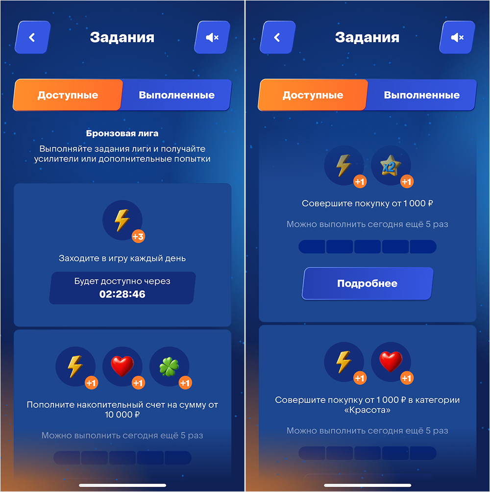 Задания создают мост между игровой активностью и банковскими транзакциями, т.к. направлены на мотивацию игроков пользоваться банком ВТБ.